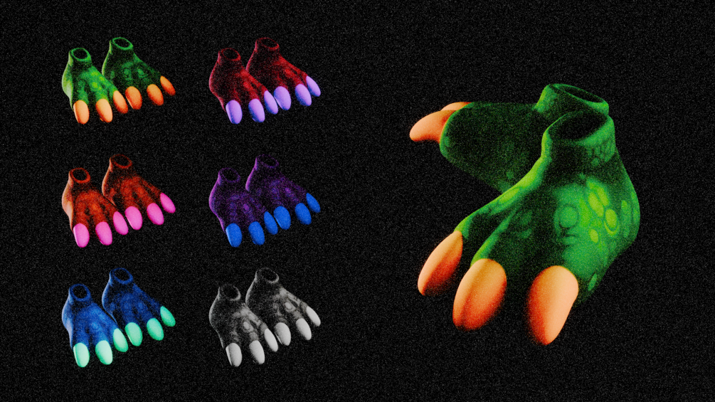 - Commercial avatars/worlds: You may include these dino shoes in avatars or worlds for sale or personal use, but redistribution of the raw asset files is strictly prohibited.