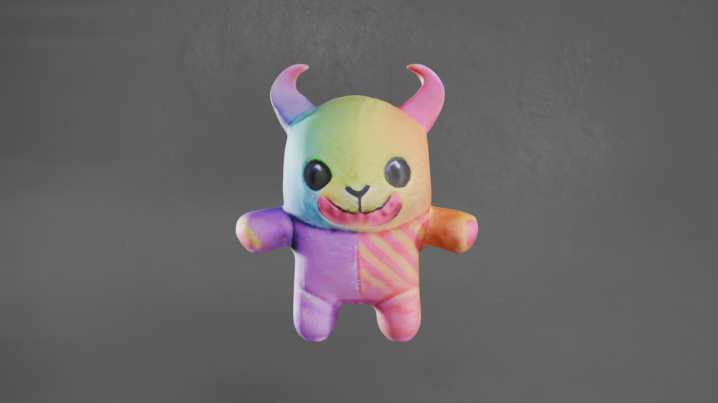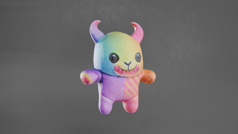 Hand-drawn 3D avatar decoration asset meticulously crafted to appear original on your virtual characters. Expertly sculpted with balanced topology around 15k triangles, this vibrant plush-like demon “Rainbow Plush Buddy” accessory infuses any digital persona with a cheerful yet mischievous charm, perfect for VR social worlds, stylized RPGs, or engaging streaming content.