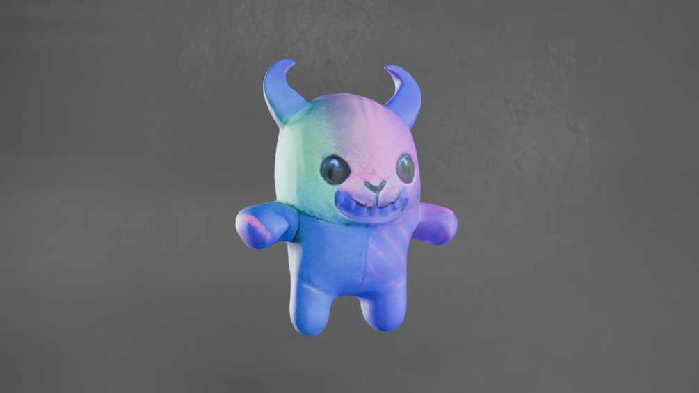 Hand-drawn 3D avatar decoration asset meticulously crafted to appear original on your virtual characters. Expertly sculpted with balanced topology around 15k triangles, this vibrant plush-like demon “Rainbow Plush Buddy” accessory infuses any digital persona with a cheerful yet mischievous charm, perfect for VR social worlds, stylized RPGs, or engaging streaming content.